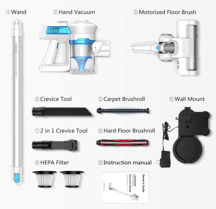 Il prezzo dell’aspirapolvere senza fili JASHEN è senza ombra di dubbio vantaggioso, visto che l’aspirazione è di buona qualità e inclusi nella confezione si trovano numerosi accessori.